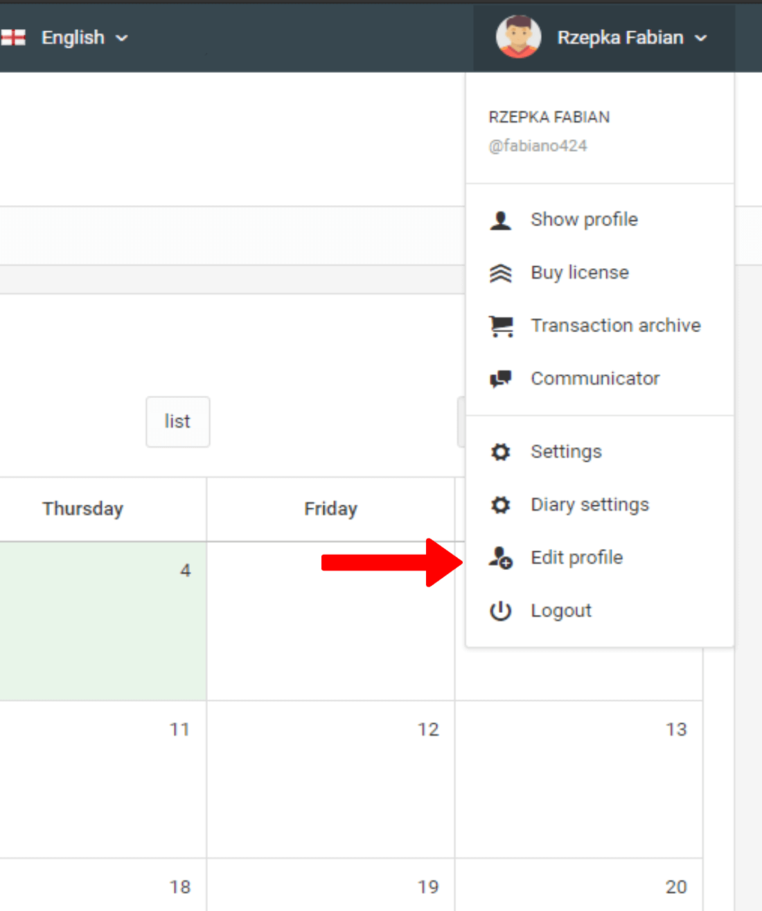 To change your ProTrainUp e-mail address or password, click on your name in the top-right corner. Then select the "edit profile" option from the menu that appears. The next step is to click on the "update email" or "update password" button. After clicking the option you are interested in, the system will ask you for the current password and a new e-mail or password.