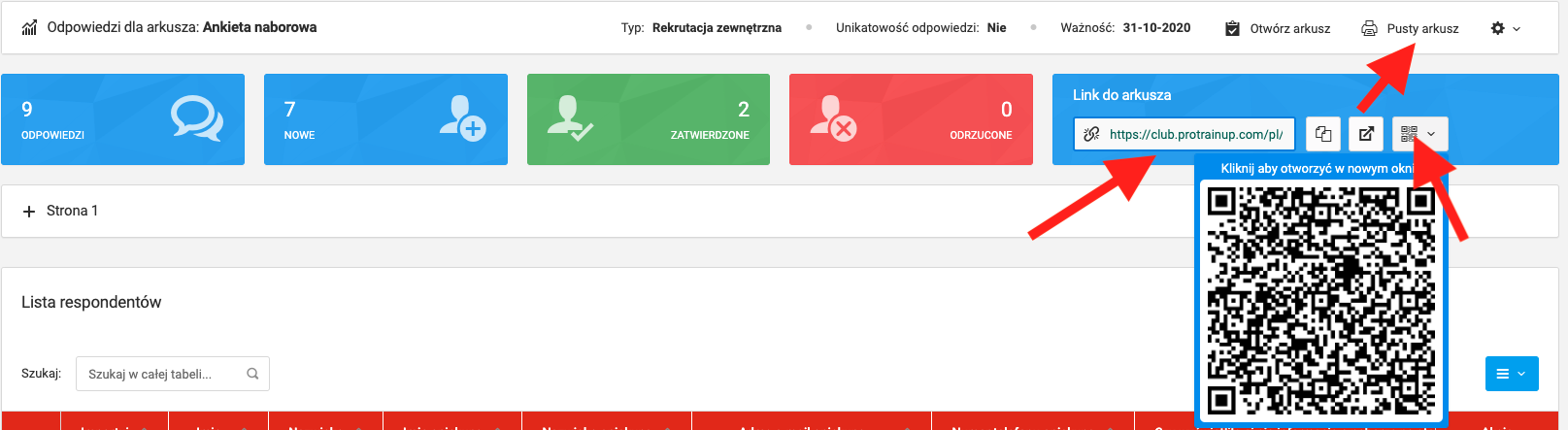 To download the link, go to the list of forms and press the name of a form. You will be redirected to a details page of the given form and on the right, you will find a "Link to the form" field. On the left, there is an example of website integration. Moreover, you can download a QR code individual for each form, that you can include on printed documents, such as posters or leaflets.